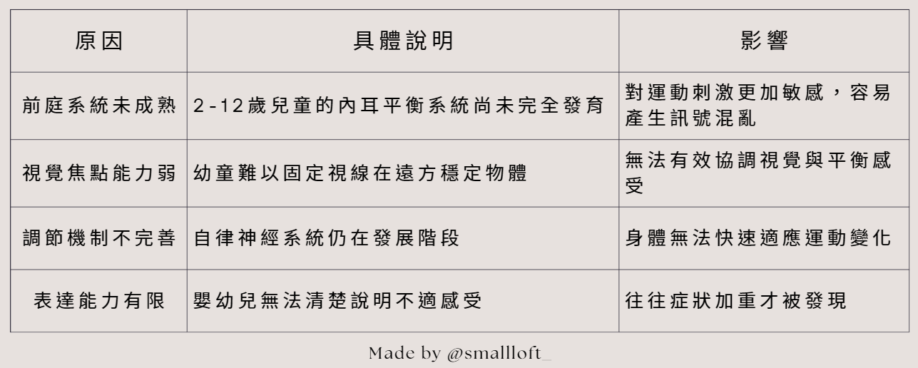 2~12歲兒童:這是暈車最常見的年齡層,尤其是3-8歲的學齡前及學齡兒童。這個階段前庭系統正在發育,特別容易受到運動刺激影響。