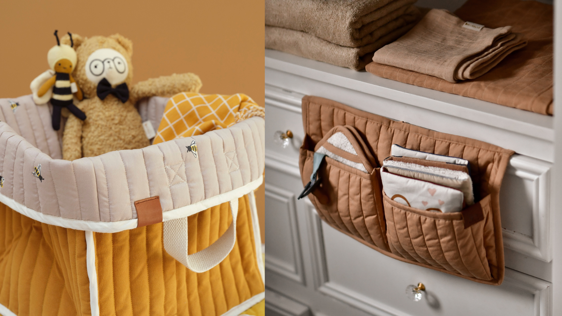 首先是居家便利用品,像是防護壁貼、嬰兒地墊、柔軟的遊戲墊或收納籃,這些看似小物,卻能大幅提升安全與整潔度。寶寶開始翻身、活動後,柔軟的地墊能有效減少碰撞,讓爸媽更安心;而分格收納籃則能將尿布、濕巾、紗布巾等物品分門別類,找起來更快速,夜裡半夢半醒時也不怕手忙腳亂。