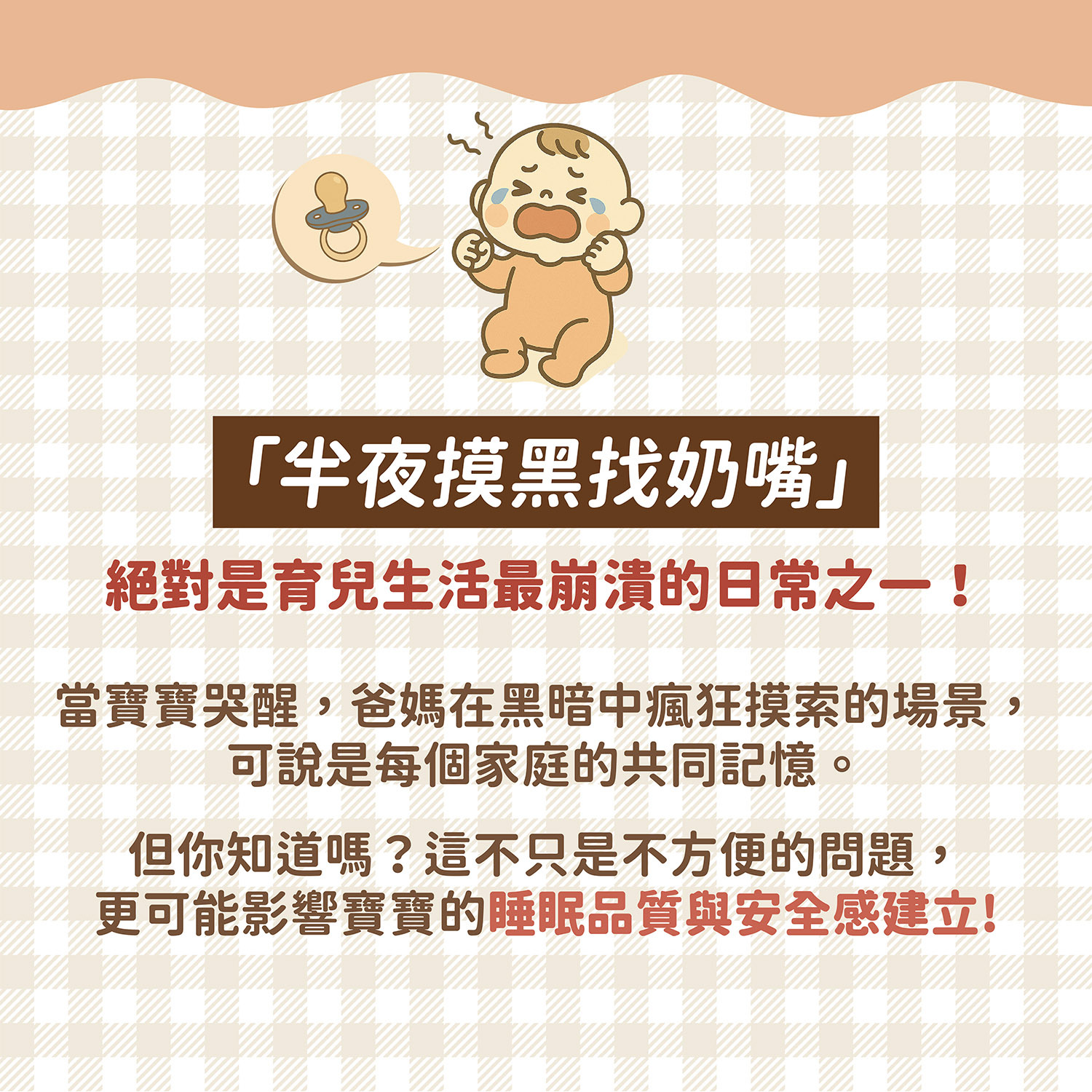 單手摸索的窘境:奶嘴體積小,在黑暗中難以定位,讓父母焦急又抓狂。