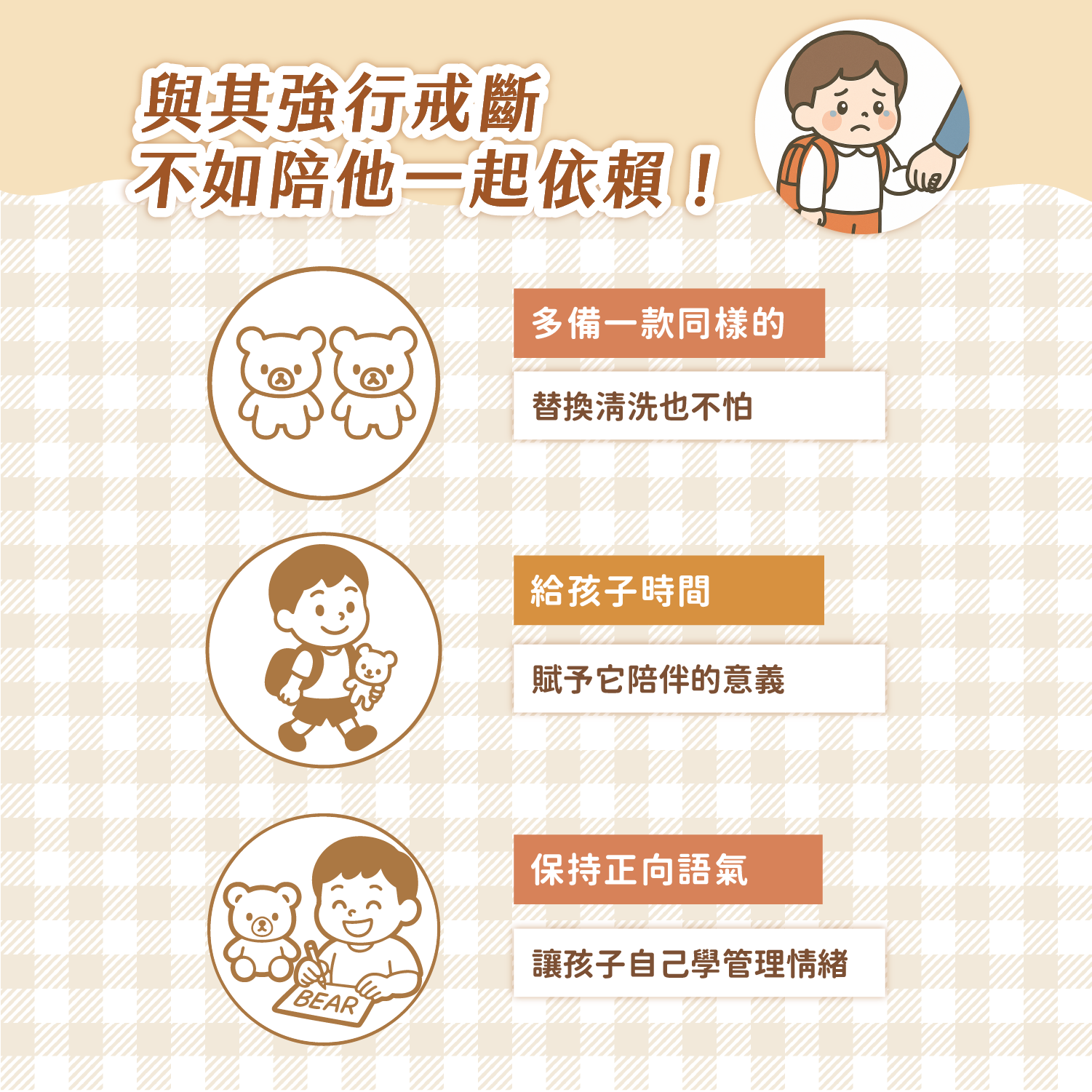 面對孩子對小物的強烈依賴,強行拿走只會讓孩子感到被剝奪、焦慮加倍。與其對抗,不如順應並引導,讓安全感小物成為我們育兒路上的神隊友!