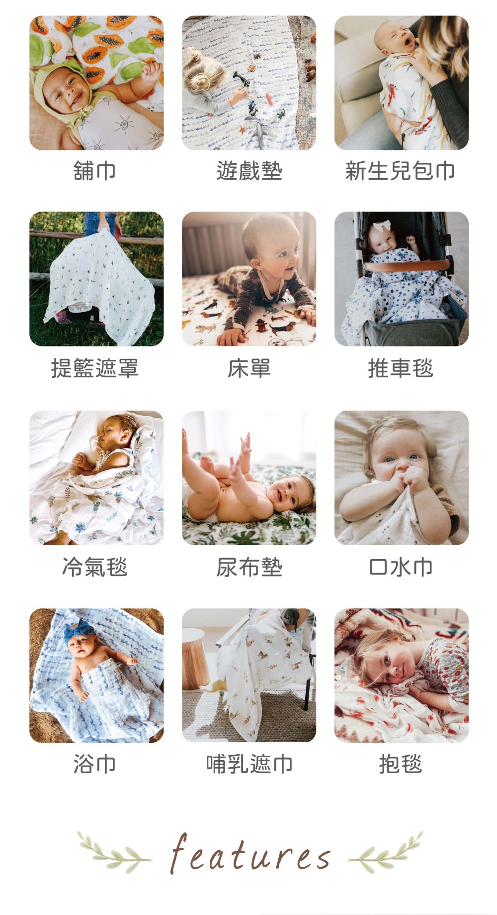 ✔一巾多用途,可當包巾、蓋被、哺乳遮巾、床單