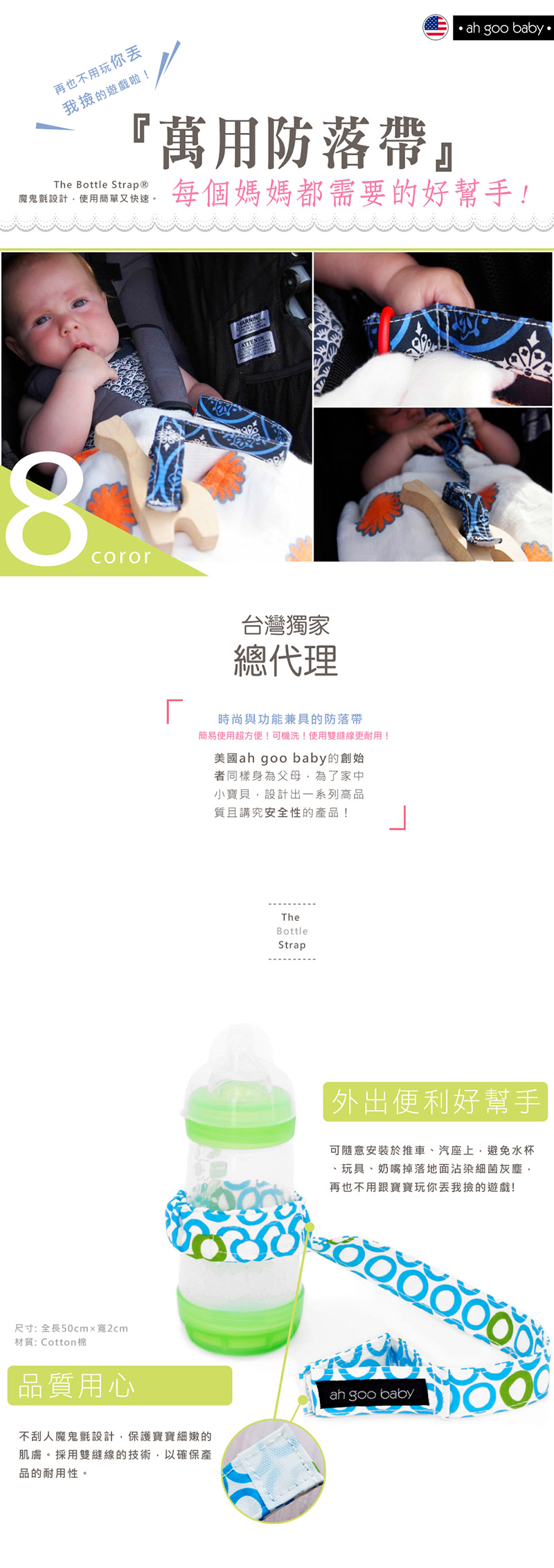 BottleStrap 萬用防落帶,避免物品掉落地面沾染細菌灰塵,再也不用跟寶寶玩你丟我撿的遊戲,外出便利的好幫手。