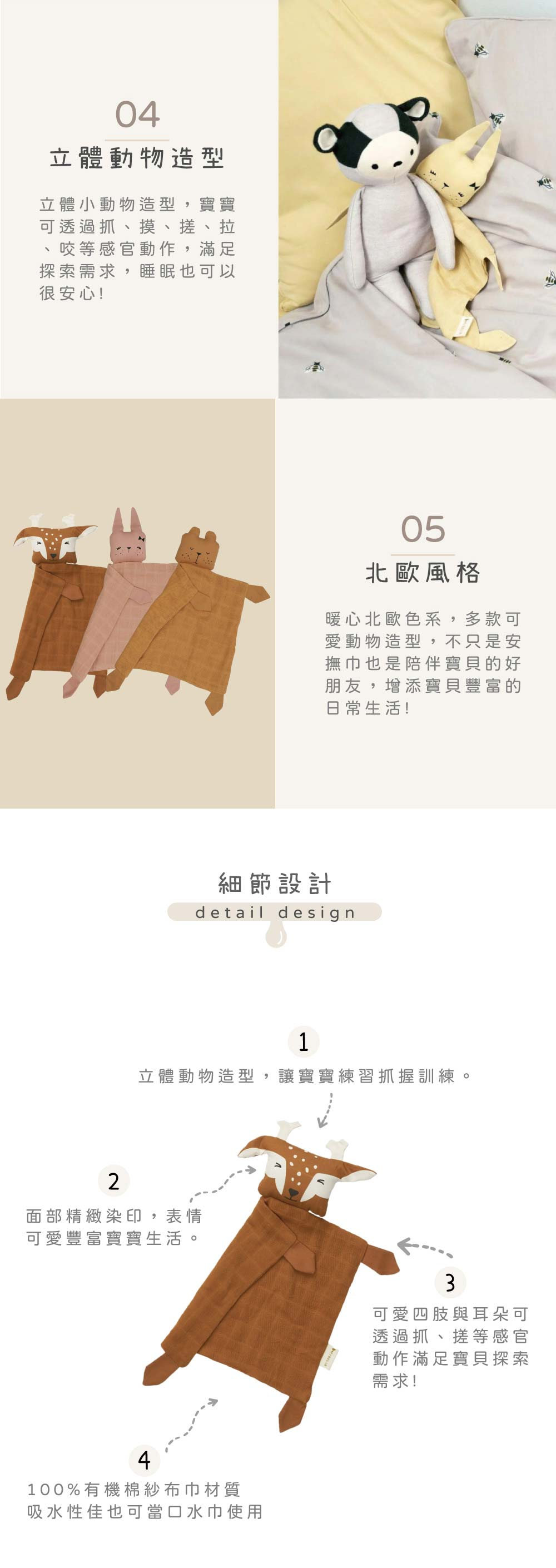 ✔暖心北歐色系,多款可愛動物造型,增添寶貝豐富的日常生活