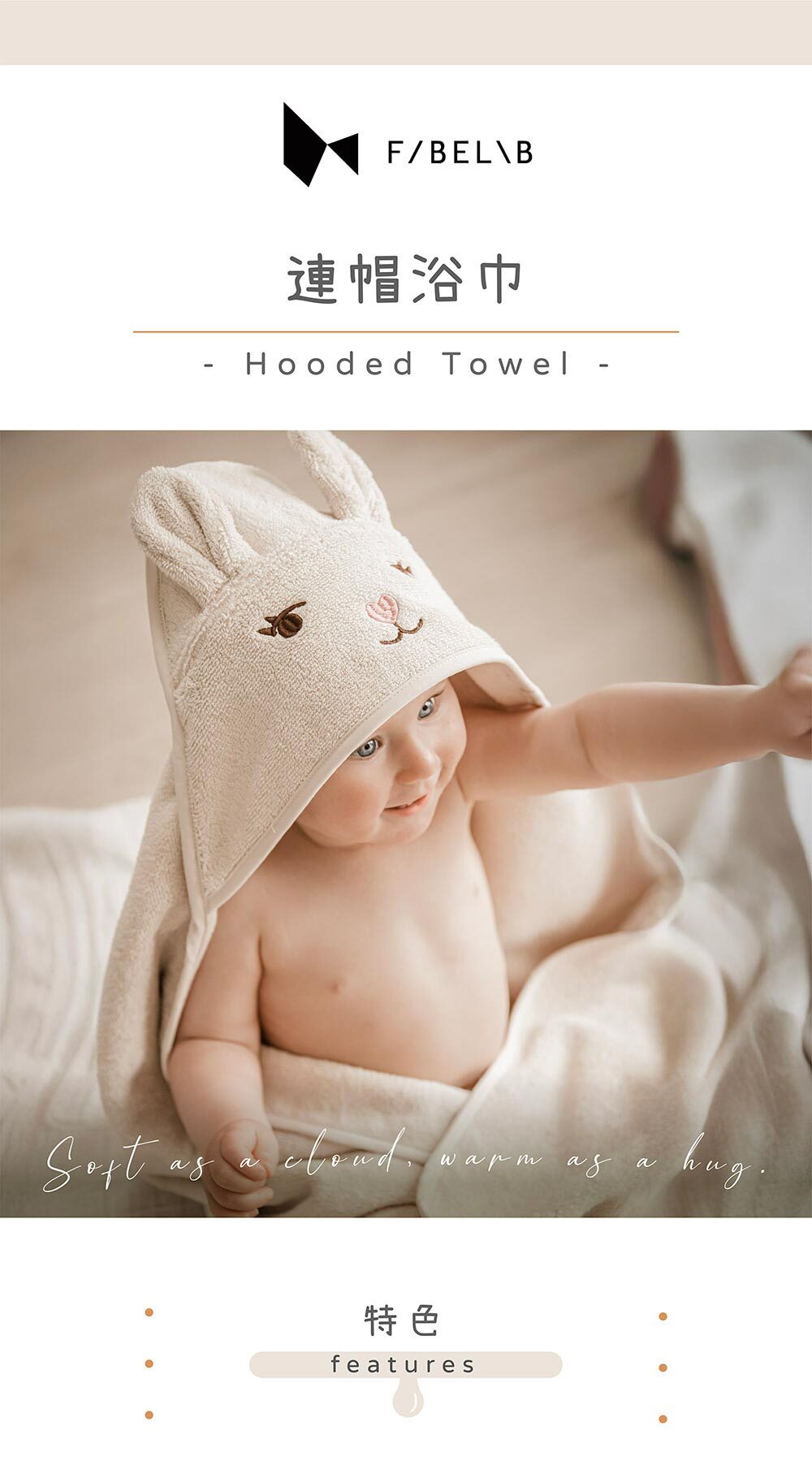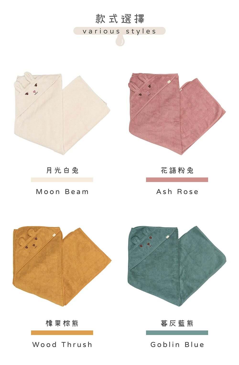 ✔可愛造型帽兜設計,洗澡後快速包覆,避免著涼