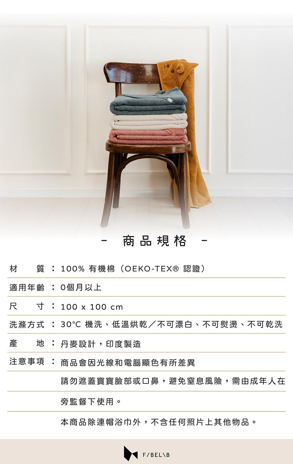 材質:100% 有機棉(OEKO-TEX® 認證)