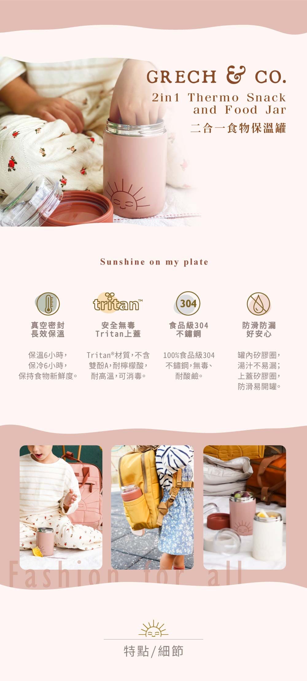 ✔獨特二合一分隔,下罐裝主食、湯品,上蓋放水果、麥片、零食