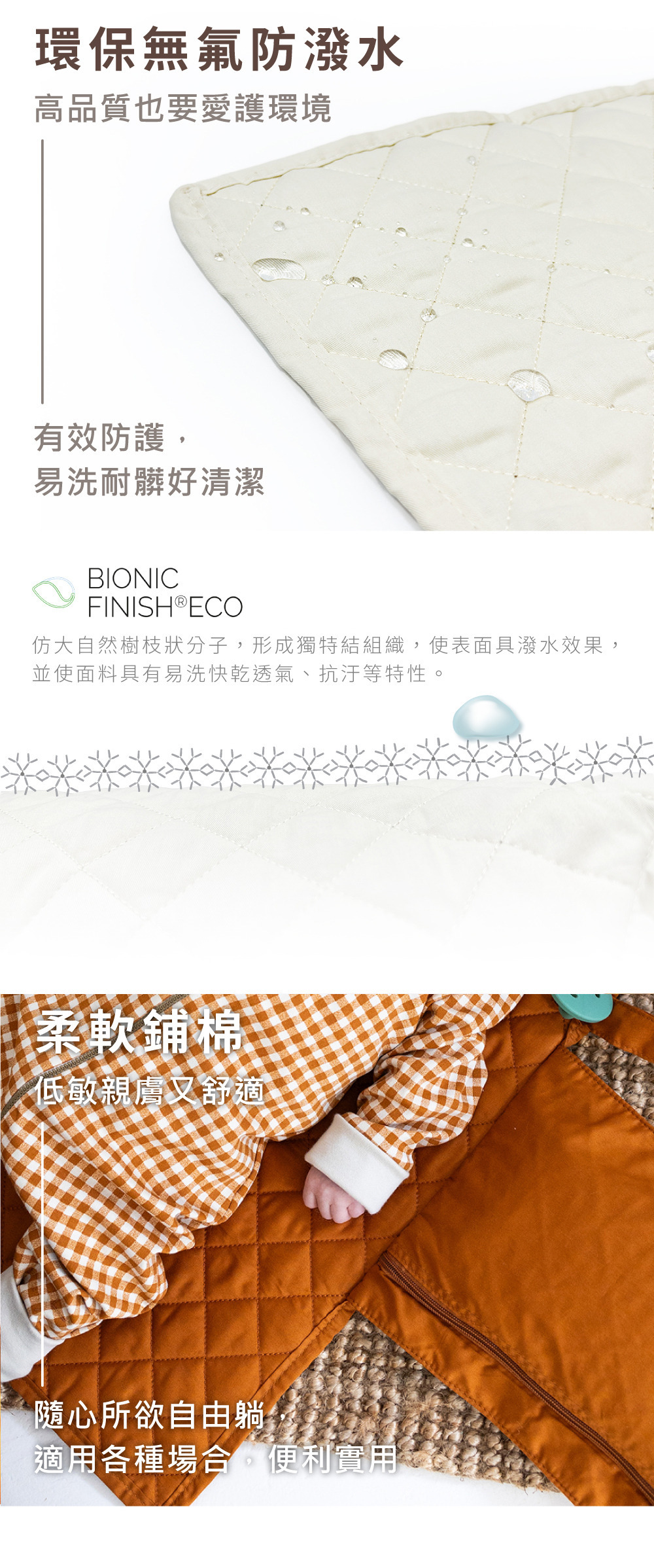 ✔100%有機棉x環保無氟防撥水處理,安心使用好清洗!