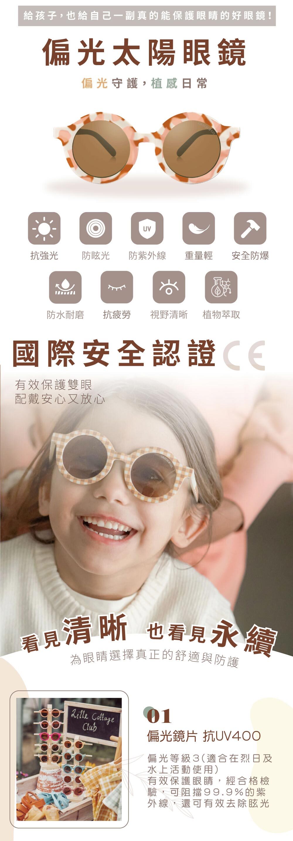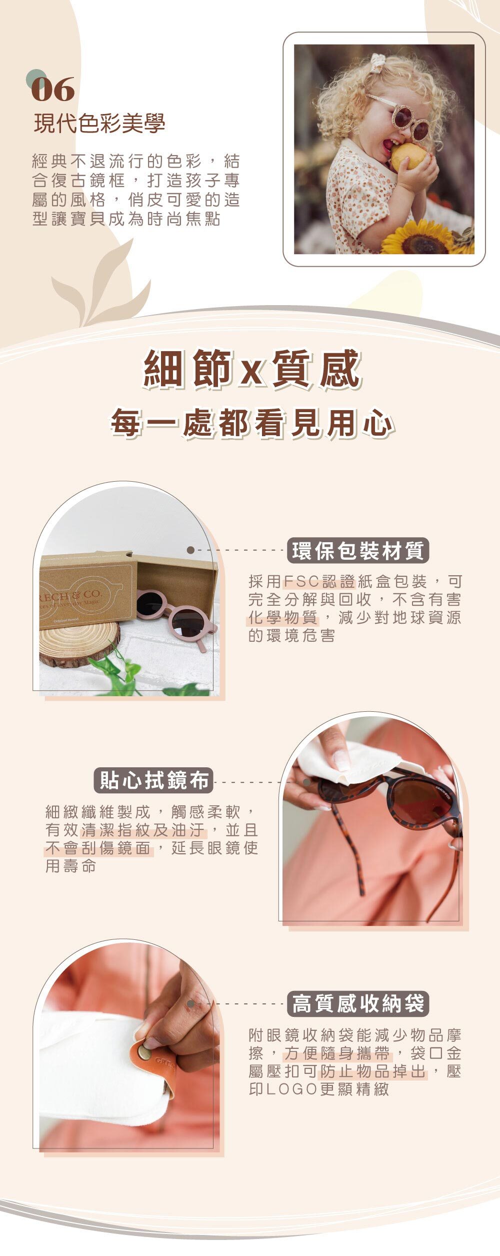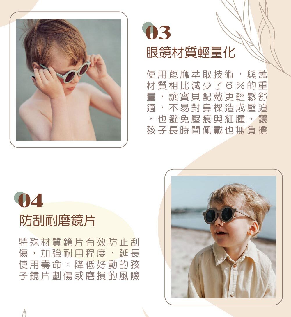 ✔鏡片使用可生物降解的三醋酸纖維,讓寶貝看得更清楚,更對環境友善,實現真正的可持續時尚!