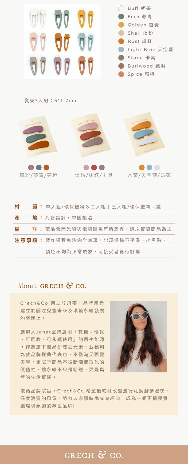 玩耍日常,寶貝的頭髮也要打扮美美的!Grech & Co.髮夾,以經典不退潮流的色彩完美搭配高質感霧面,打造出現代媽咪最愛的時尚髮夾!