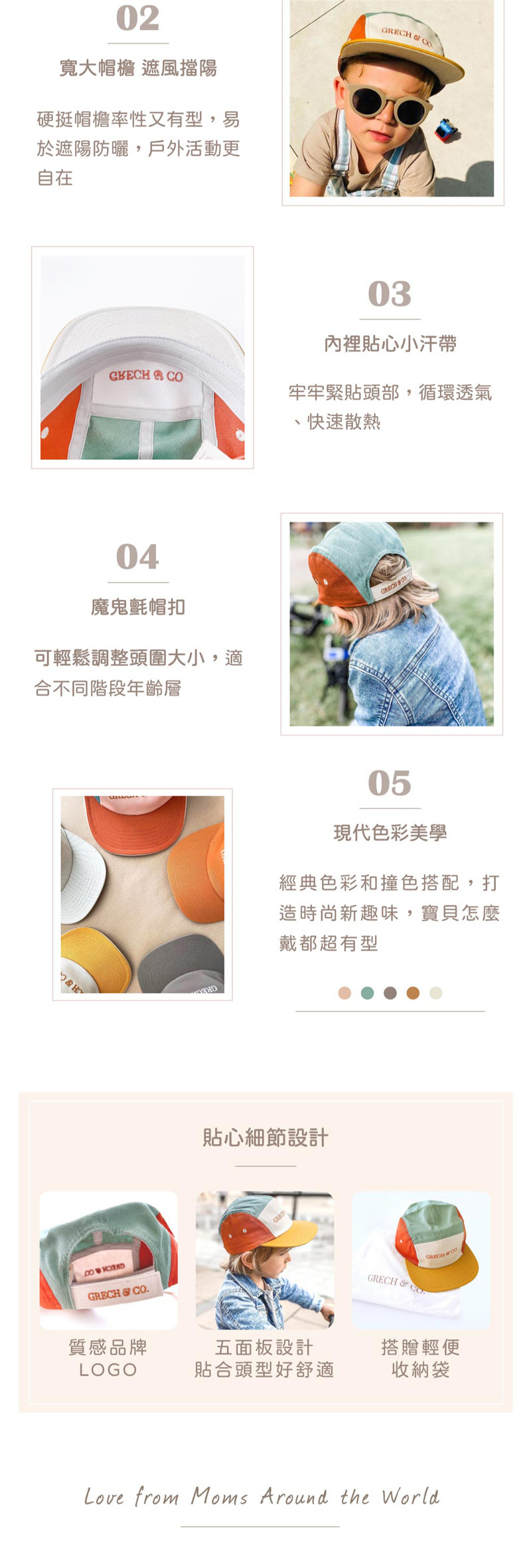 Grech & Co.兒童遮陽帽,俏皮帶點帥氣,不僅可遮陽也是穿搭時尚配件,打造寶貝潮流新態度。