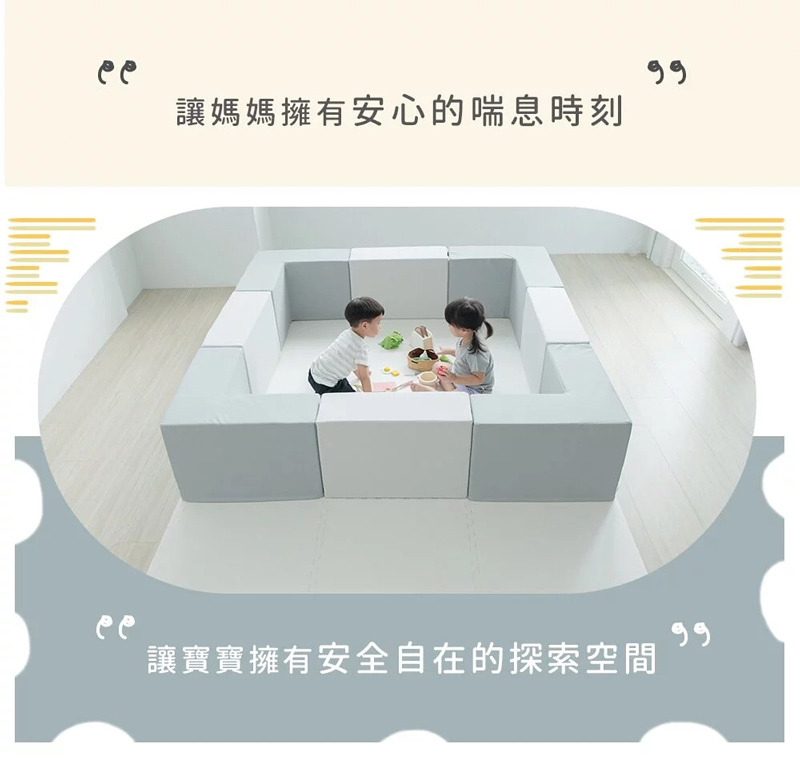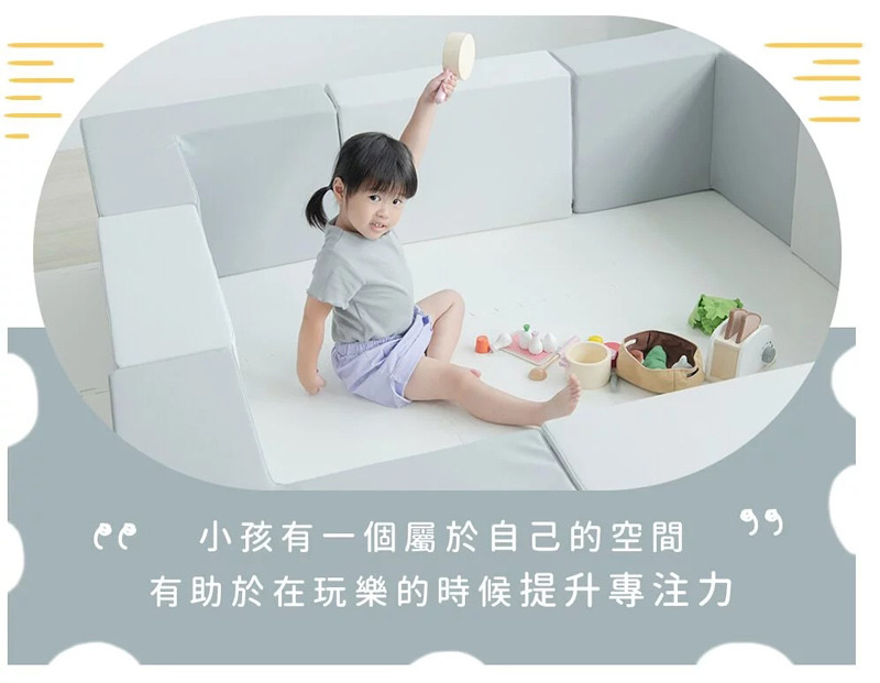 柔軟又堅固的特性,寶寶可以盡情嘗試爬行、扶站,搭配地墊擴充空間,寶寶可以自由探索。