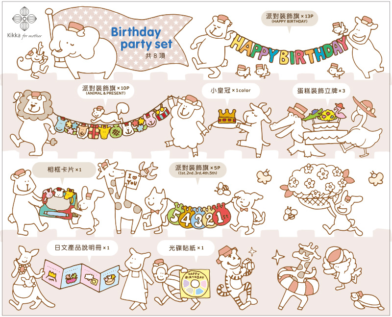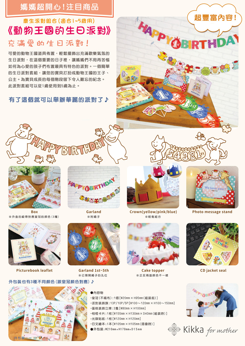 可愛的動物道具佈置,輕鬆擺飾出充滿歡樂氣氛的生日派對, 為寶貝成長的每個階段留下令人難忘的紀念吧。