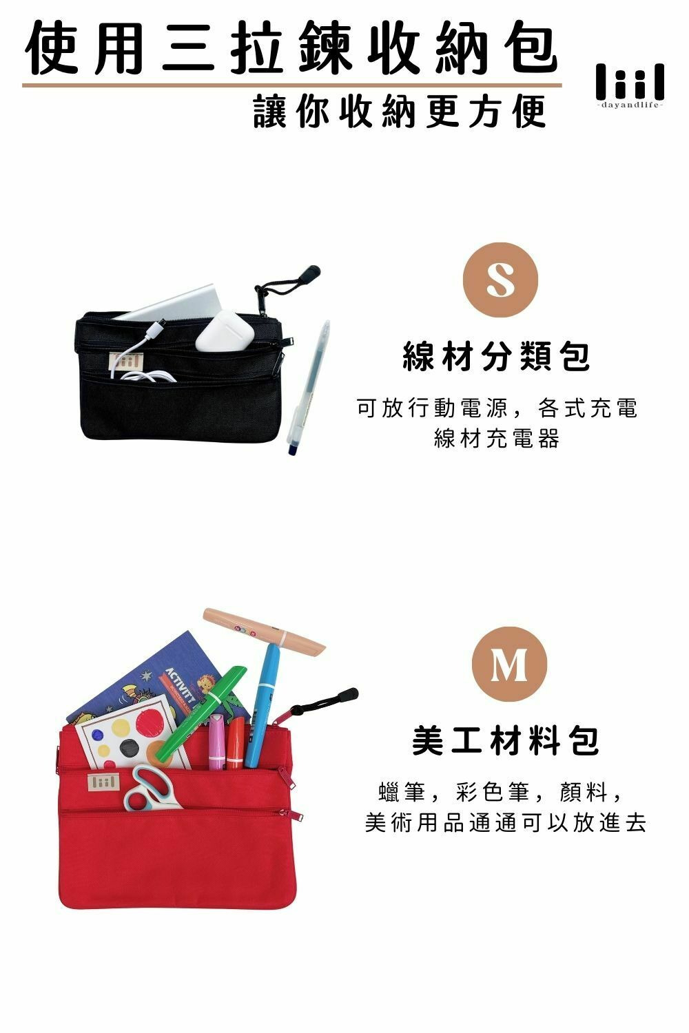 不僅適合日常收納,更是旅行、工作和帶孩子出門時的必備品,解決無夾層包包的凌亂問題。