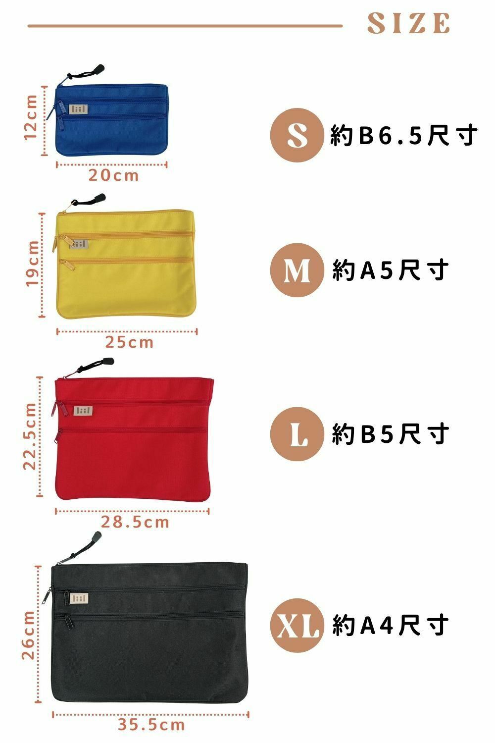 三層尺寸分隔設計:每個都有獨特的三層拉鍊設計,讓物品收納更簡單。