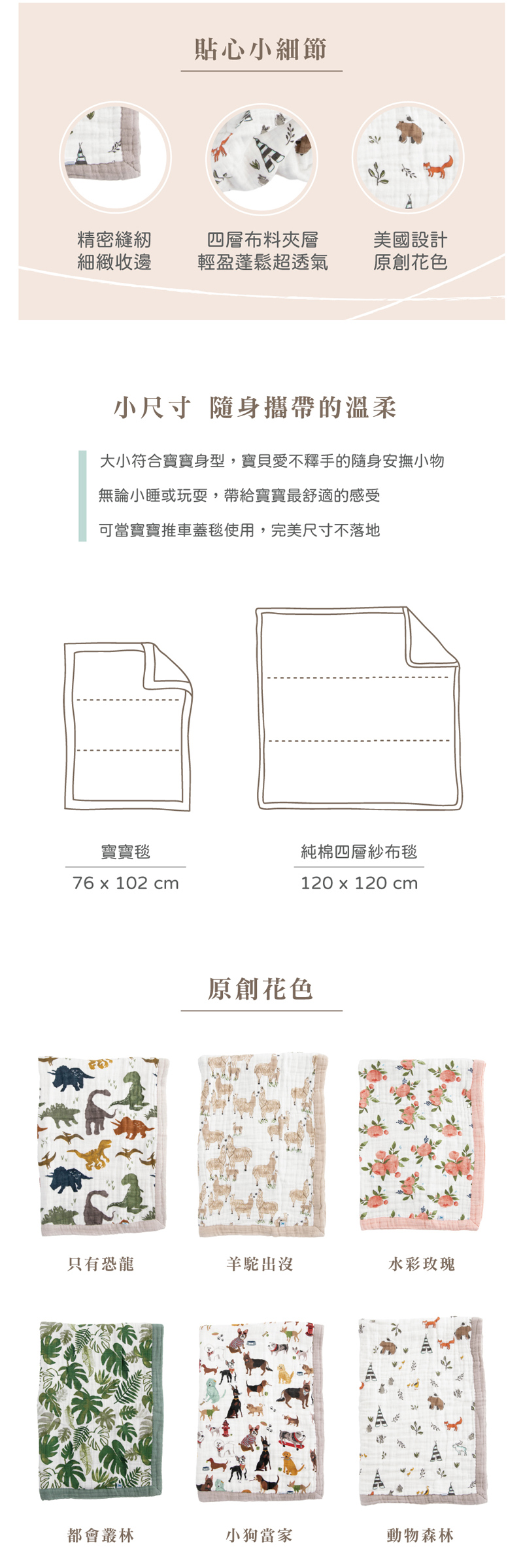 ✔ 專為寶寶身型設計的小尺寸,推車蓋毯剛剛好、不落地