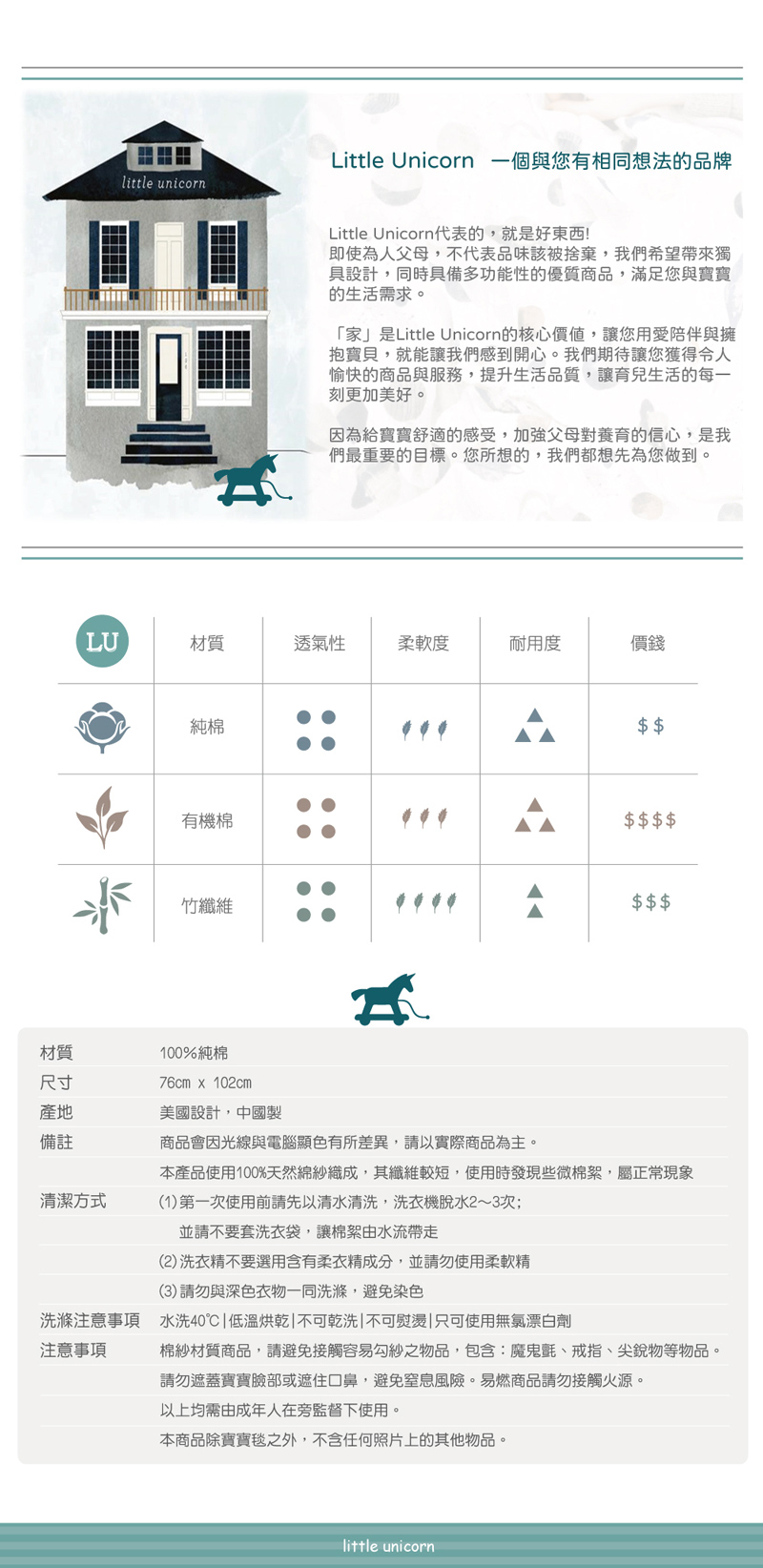 Little Unicorn 純棉寶寶毯 (多款可選)