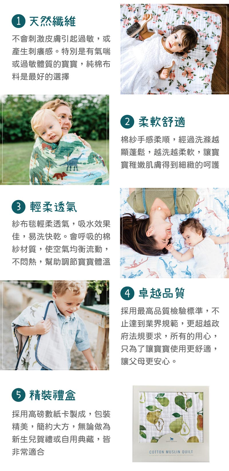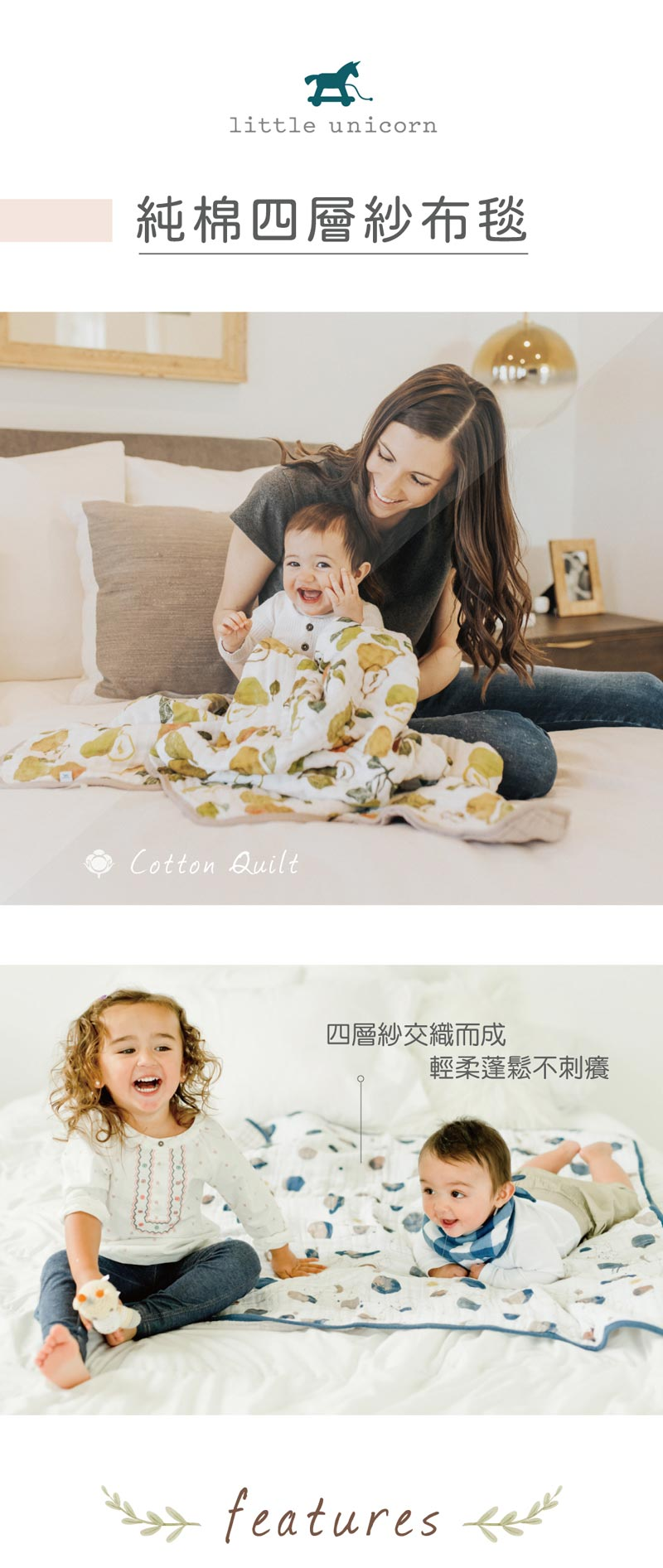 四層紗交織而成,涼爽透氣不悶熱棉紗手感柔軟滑順,洗滌後越顯蓬鬆柔軟,讓寶寶稚嫩肌膚得到細緻呵護紗布毯輕柔透氣,吸水效果佳不悶熱幫助調節寶寶體溫送禮、自用皆合適