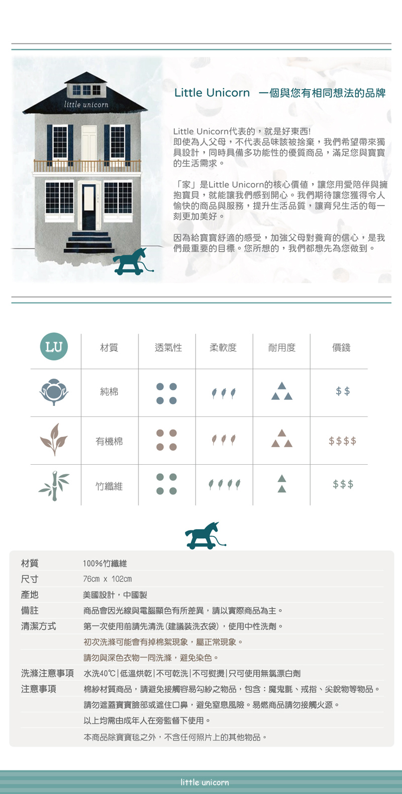 Little Unicorn 竹纖維寶寶毯 (多款可選)