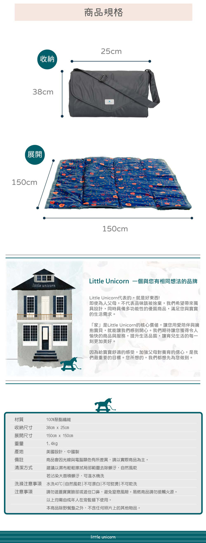 Little Unicorn野餐墊輕巧好攜帶及易摺疊收納便利性高,是您戶外活動的最佳選擇美國原創花色巧思設計,就是要讓您與眾不同!