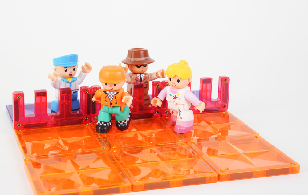 關節處-手、腳、頭部皆能轉動~可以配合場景情境做出動作,而且腳的底部含有磁鐵,可以放在磁力片上一起玩唷!