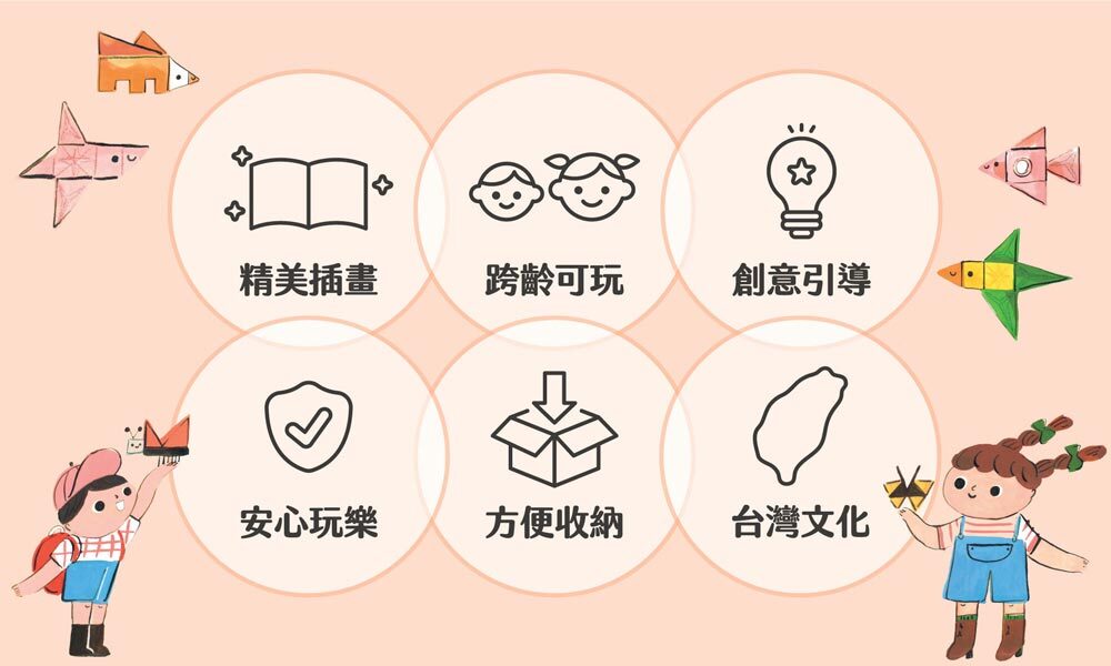 臺北101、藍鵲、黑熊與蝴蝶,從平面到立體的組合挑戰,逐步啟發孩子的空間想像力和建構能力。和孩子一起認識臺灣的自然與文化之美,打造出你們專屬的番薯島場景。