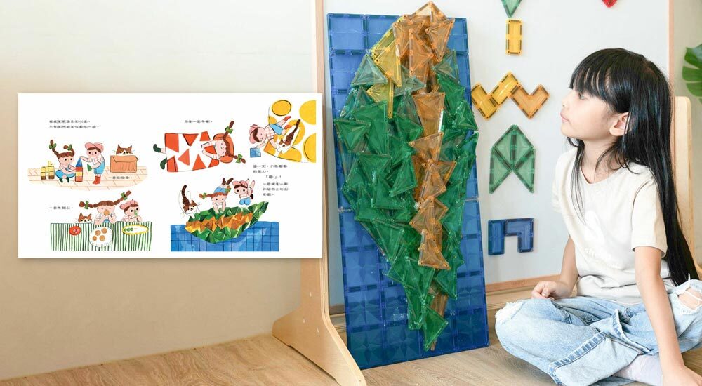 內容物:磁力片 x120 pcs、繪本 x1本、圖卡 x20張