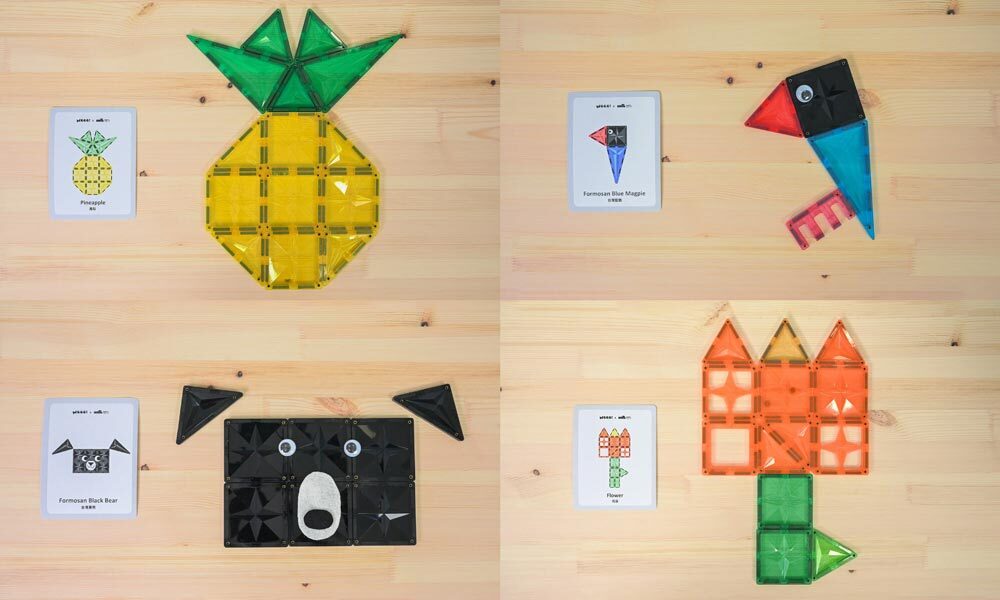 《番薯島奇妙旅程》團隊絞盡腦汁設計出許多結合台灣特色玩具的拼法,讓繪本裡的畫有更多豐富的呈現。期待大家都能從閱讀繪本和玩磁力片的過程中,找到自己心中的「臺灣特色」。用圖像和磁力片,一起構築屬於自己對這片土地的關懷和愛