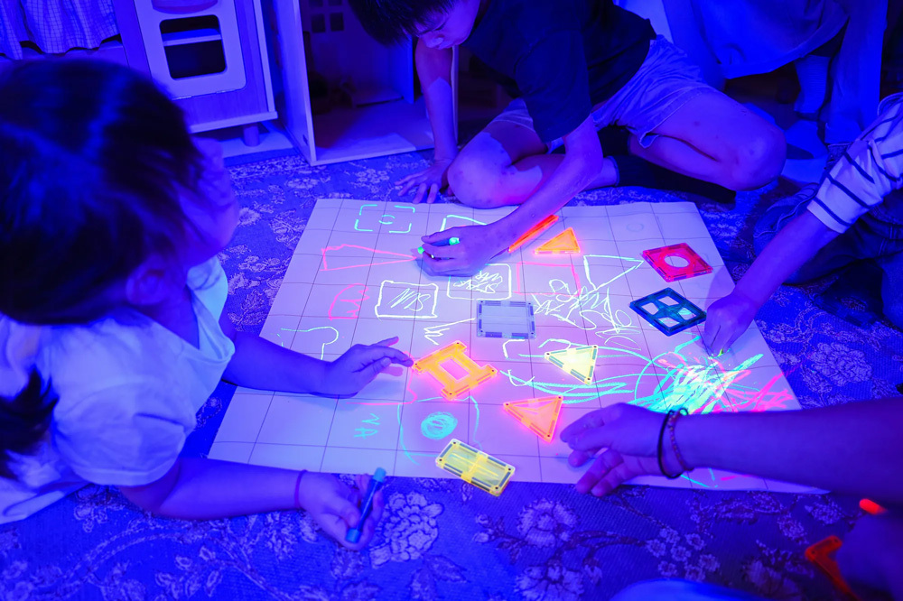 ◆395nm紫光可用於照射磁力片產生螢光效果,可變焦
