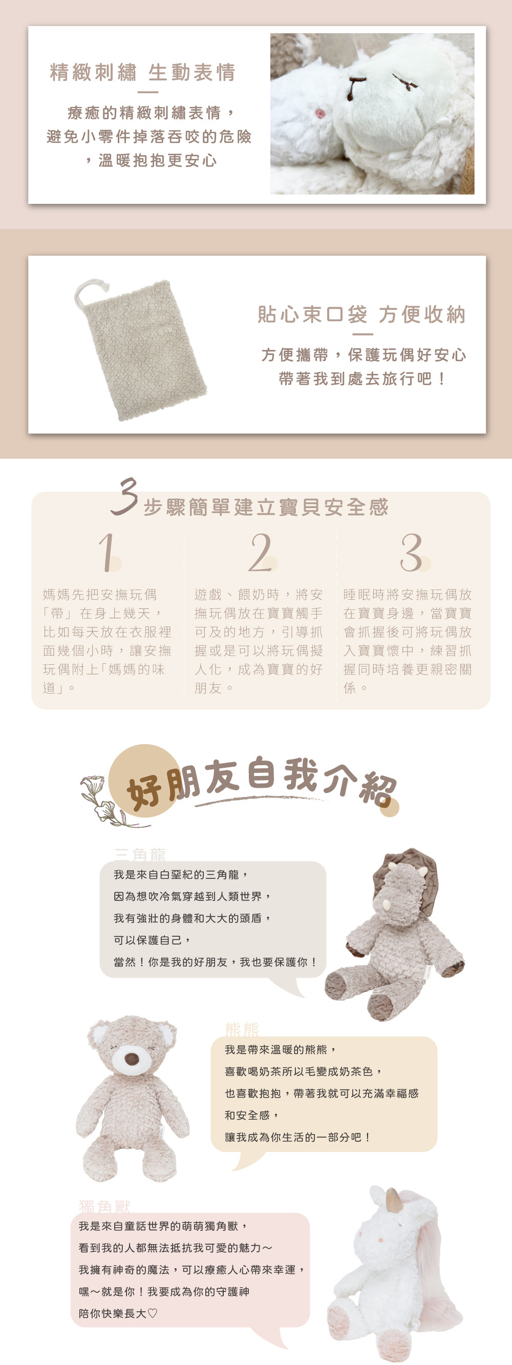 ✔精緻臉部表情刺繡,增加立體觸感,讓寶貝愛不釋手