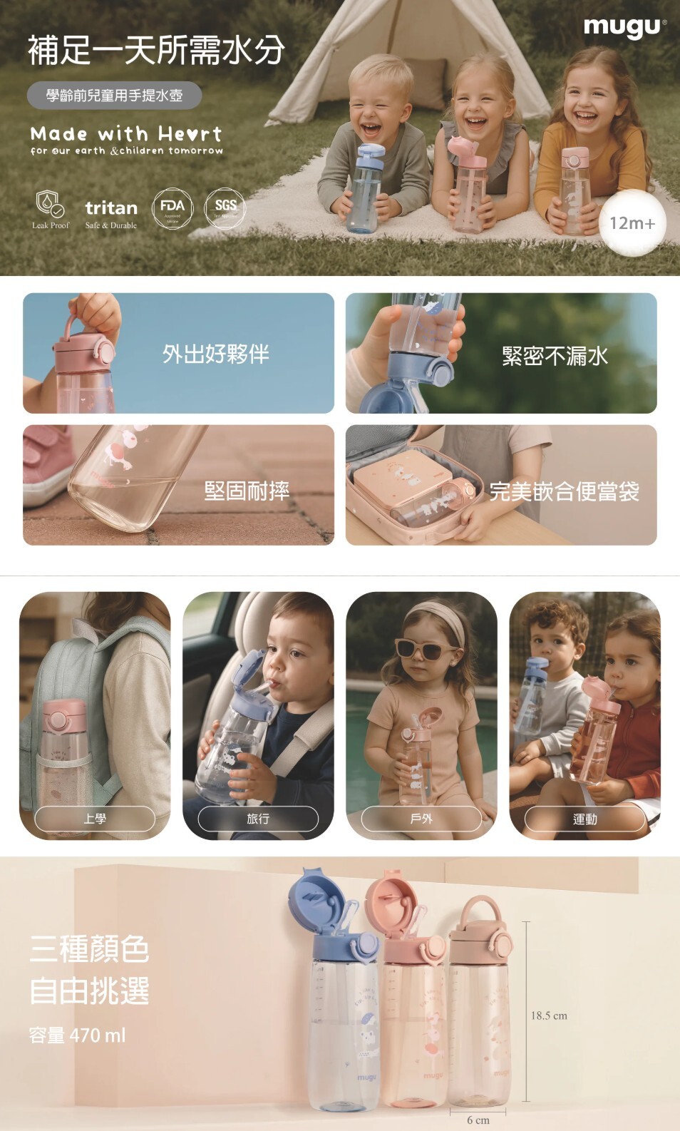 ✔470ml大容量,補足孩子一天水分。