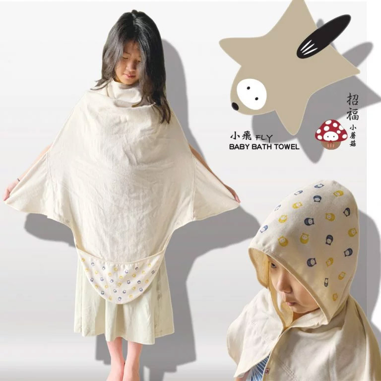 小飛浴巾與nizio的超人氣小蘑菇浴巾相同,可從出生時的新生兒洗澡圍裙、包巾變化到長大時的斗篷浴巾。材質與設計更俐落簡單。您可與小蘑菇浴巾搭配交替使用,在不同的氣候與季節使用或外出時攜帶。浴巾材質為表層紗布內層毛巾布,吸水、透氣、快乾。