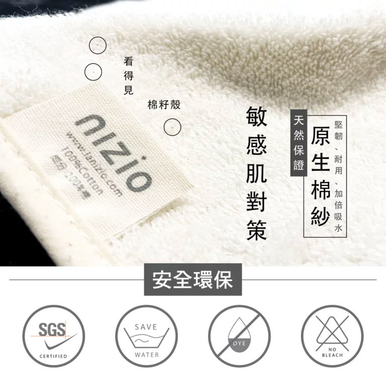 材質:100%純棉,毛巾本體採用100%原棉(未經漂染、化學處理)