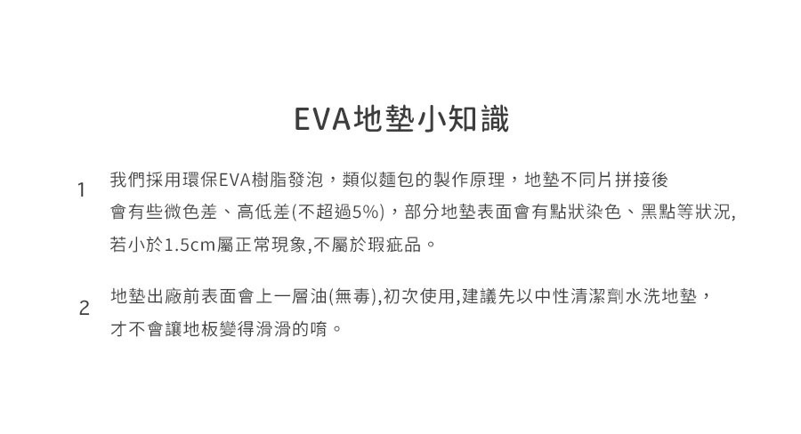 材質 : EVA樹脂 (Ethylene Vinyl Acetate) 不含塑化劑