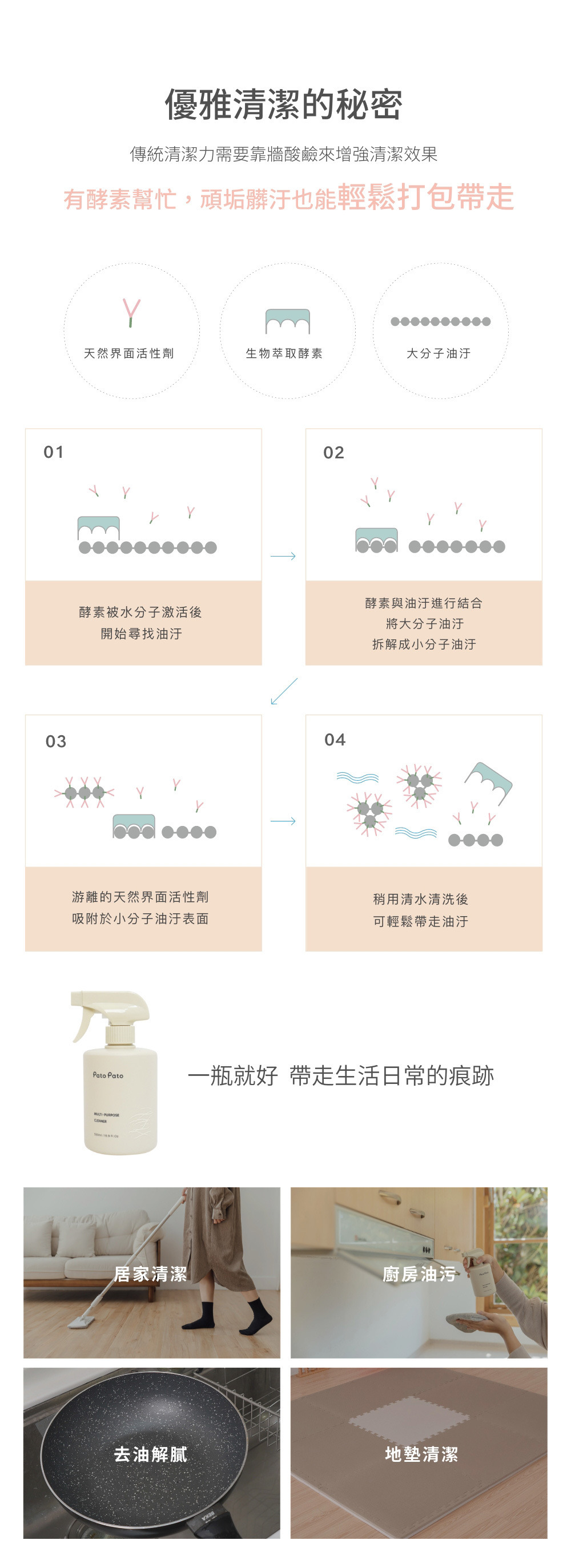 【用途】清潔居家環境,廚房油污、抽油煙機、地板等家庭髒污