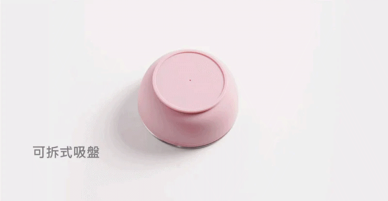 餐碗底部加上矽膠吸盤,下壓餐碗製造真空狀態的超強吸附力,保持餐碗穩定不傾倒。